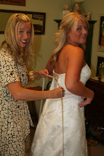 What a fun week! Nellie is my cousin but also one of my best friends. I know back in the day all we did is fight but today we are more like sisters. I love this girl! Several years ago Nellie's mom Aunt Sue died of breast cancer so are family are even closer than we were before which is pretty darn close. We miss Aunt Sue so much and think of her often. The week of the wedding my heart was especially tender for Nellie.....I knew it was going to be tough to not have her mother there on her wedding day. I know she was there in spirit and I could feel her there! The wedding week started with a fun night out to pizza at Hubby's and then over to look at Nellie and Jody's house that they are having built. Thursday was spent at the Moses Lake Water park. It was tons of fun. We ended that night with a BBQ at our house. Friday we had a shower for Nellie at Anthony's and she even got one of my Mom's cute aprons. It was nice to be with the girls. We headed over to set up the wedding stuff and then off to Allen and Cherl's for another family get together. Saturday was crazy......lunch with the girls, doing flowers with Nellie, decorating and helping Nellie get ready. It was something I will always remember and something that I had tons of fun doing. Thanks to my in-laws Nellie had the most beautiful wedding. We used their backyard and it was Perfect! I hope that Nellie and Jody have a long and happy life together! Love you guys!